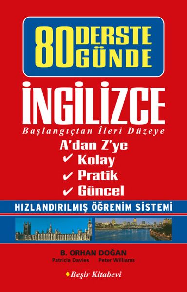 80 Derste / 80 Günde İngilizce, İngilizceyi, gerçekten 80 ders - 80 gün (günde ortalama bir saat çalışarak toplam 80 saat) gibi çok kısa bir sürede öğretmeyi amaçlamaktadır.Başlangıçtan ileri düzeye kadar, çok geniş kapsamlı İngilizce bilgisi, mümkün olan en hızlı, en kolay ve en verimli yöntemle verilmiştir. Yeni başlayanlar için olduğu kadar, belirli düzeyde bilgisi olanlar için de, her zaman başvurulabilecek bir kaynak olacaktır.Günlük konuşmalardan politikaya, fıkralardan spora, sanattan internete kadar her alanı kapsayan ders konularının olabildiğince güncel ve sürükleyici olmasına özen gösterilmiştir.Dilbilgisi, sözcükler, söyleniş (telaffuz) ve alıştırmalar aynı sistem içinde birlikte verildiğinden, sözlük ya da başka herhangi bir dilbilgisi kaynağına başvurmaya gerek duymayacaksınız.80 Derste / 80 Günde İngilizce, ayrıca, tüm ders konularını kapsayan iki CD ve bir konuşma kılavuzu île birlikte, bir 'öğrenim seti' olarak da sunulmaktadır.