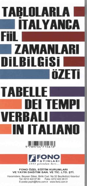 İtalyancayı öğrenmeye yeni başlayanlar için hazırlanmıştır. İtalyanca dilbilgisi özetini örnek cümlelerle anlatmıştır. Katlanır kortonet şeklinde olması her an elinizin altında olmasına kolaylık sağlamıştır.