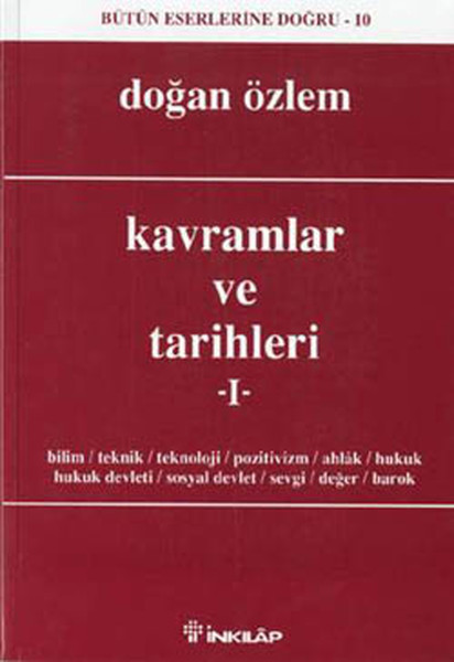 Dört kesimde toplanan yazilardan olusan bu kitaptaki yazilarin büyük kismini, yazarin "bilim", "teknik", "teknoloji", "pozitivizm", "ahlak", "hukuk", "hukuk devleti", "sosyal devlet", "sevgi", "deger" ve "barok" kavramlari üstüne yazilari olusturuyor. Yazar, bu kavramlara, bizde pek örnegi olmayan bir yönelim, "kavram tarihçiligi"ne özgü bir yönelimle egiliyor. Kitapta, yazarin yasami ve fikirleri üstüne yapilmis bir söylesiye de yer veriliyor. Yazarin doga bilimleri ile 'sosyal bilimler' ayrimi üstüne daha önce yayimlanmis olan bir konferansinin metni, bu kez konferans sonrasi yapilan tartismalarin tutanagi ile birlikte yayimlaniyor.