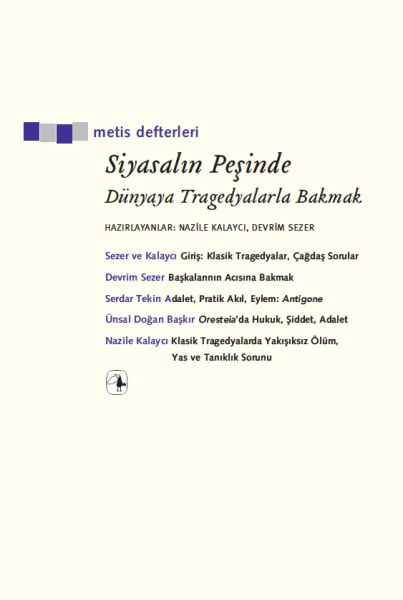 Klasik tragedyalar siyaset felsefesi ve psikanalizde sık sık yorum konusu olmuştur. Bu zengin metinlerden bazıları (Persler, Troyalı Kadınlar, Antigone, Oresteia, Eumenidler ve Yakarıcılar) burada ilk defa telif yazılarda, düşünce tarihiyle diyalog içinde ele alınıyor. Kitap kronolojik olarak uzak görünen ama içerdiği olaylarla gayet yakın duran bir geçmişe ait bu metinlerle çiftyönlü bir ilişki kurma amacını güdüyor: Bir yandan siyaset felsefesindeki tartışmaları ve günümüz problemlerini klasik tragedyaların ışığında irdelemek istiyor, bir yandan da “çağdaş tartışmalardan hareketle tragedyaları yeniden yorumlamak.