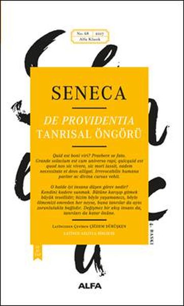 IS 65 yilinda Imparator Nero'nun emriyle intihar ederek yasama veda eden Romali düsünür Seneca'nin De Providentia'si (Tanrisal Öngörü) talih, kader ve tanrisal öngörü gibi Stoa felsefesine iliskin belli basli kavramlarin irdelendigi en önemli metinlerden biridir. Hitabet sanatinin incelikleriyle örülü üslübuyla klasik bir edebiyat metni olmasinin yani sira içeriginin Stoaci ahlak ilkeleriyle döseli olusu, tanri ve insan iliskilerinin ayrintili olarak sorgulanmasi, iyi ve kötü degerlerinin açik ve seçik ifadelerle aydinlatilmasi, yasam ve ölüm kavramlarina yaklasimi açisindan degerlendirildiginde, Roma'dan günümüze kalan örnek bir ahlak felsefesi metni özelligi kazanir. Insan zihni evreni, tanriyi, insani, iyiligi, kötülügü, dogayi, kaderi, talihi, talihsizligi, sabretmeyi, yasami, ölümü sorguladikça, satirlarinda edebiyatla felsefeyi bulusturan De Providentia samimi diliyle sonsuza degin isik tutacaktir ona.(Tanitim Bülteninden)